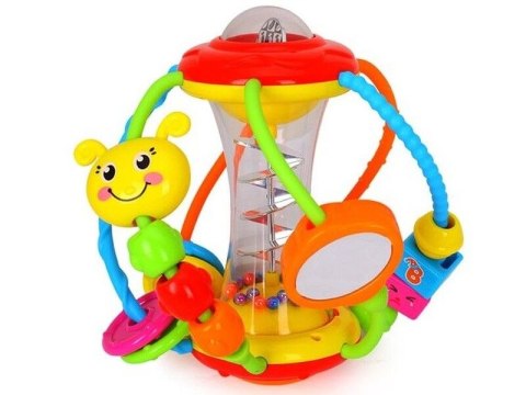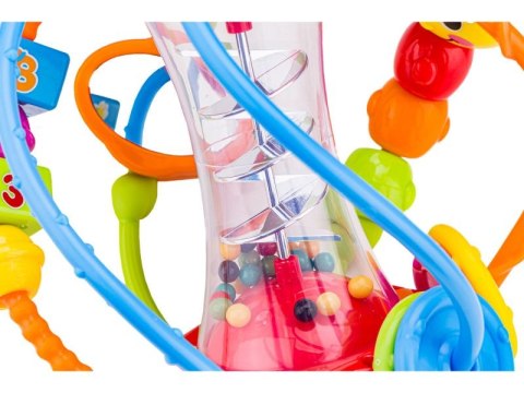 obrotowa spiralka w środku zabawki z kolorowymi kuleczkami,