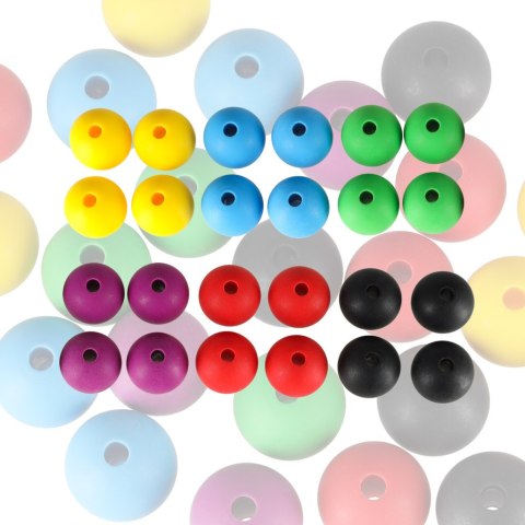 podstawkę, na której układamy zestaw sześciu kolorowych kul z dziurką. Na środku
