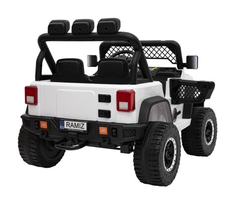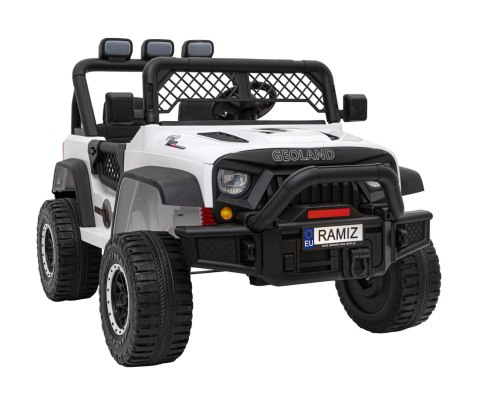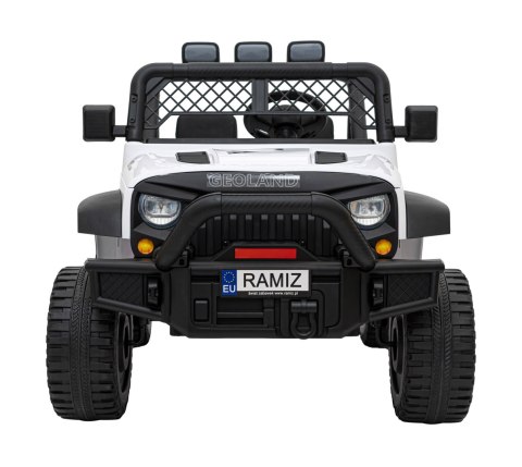 Autko terenowe Geoland Power dla 2 dzieci Biały + Pilot + Silniki 2x200W + Bagażnik + Radio MP3 + LED