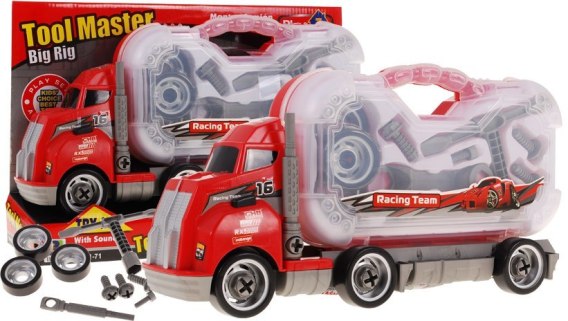 Ciężarówka 2w1 z walizką Narzędzi dla dzieci 3+ Rozkręcany pojazd + Wymiana kół + Dźwięki
