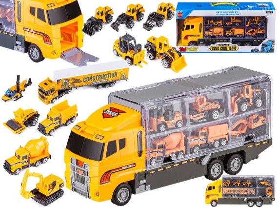 Wielofunkcyjna ciężarówka będzie świetnym prezentem dla małego fana motoryzacji. Konstrukcja tego pojazdu oraz dołączone do zestawu pojazdy budowlane sprawiają, że można je wykorzystać w zabawie na wiele różnych sposobów. Ciężarówka może pełnić funkcję garażu, lawety, transportera lub wyrzutni.
