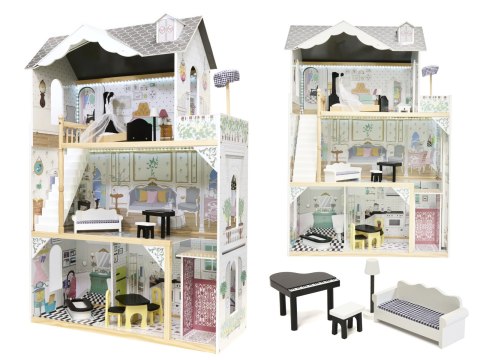 Piękny drewniany domek dla lalek w nowoczesnym stylu, będzie spełnieniem marzeń każdego dziecka.
