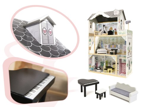 • ESTETYCZNE I SOLIDNE WYKONANIE - szczegóły w formie miniaturek mebelków oraz kolorowe grafik i zachwycają i sprawiają, że domek jest wyjątkowy