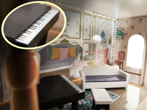 Miniaturki mebli, grafiki na ścianach i oświetlenie LED tworzą domek wyjątkowym i sprawiają, że jest bardzo przytulny.