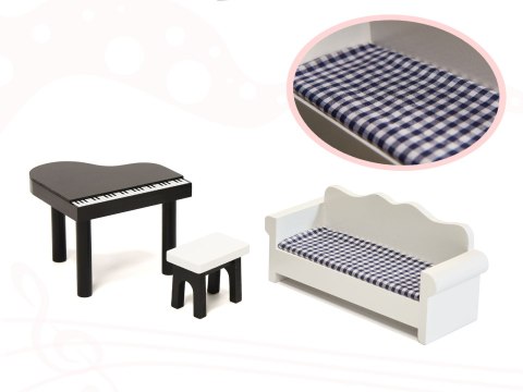 Do zestawu dołączone zostały piękne drewniane mebelki, które będą stanowiły doskonałe uzupełnienie każdego pomieszczenia w domku.