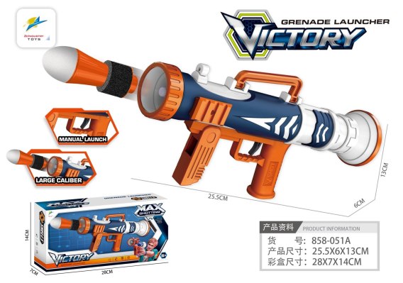 Duża wyrzutnia miękkich piankowych pocisków dla dzieci od szóstego roku życia. Zabawka wykonana została z bezpiecznych dla dzieci materiałów. Użycie wyrzutni jest niezwykle proste. Wystarczy umieścić pocisk w lufie i nacisnąć spust. Zabawka zapewni emocje małym i dużym, będzie idealna do aktywnego spędzenia czasu na zewnątrz. Wyrzutnia posiada wygodną rączkę do przenoszenia, a do swego działania nie wymaga użycia baterii.
