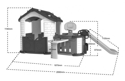Domek ogrodowy ze zjeżdżalnią, koszykówką oraz ogródkiem ze stolikiem [ZOG.CHD-808]