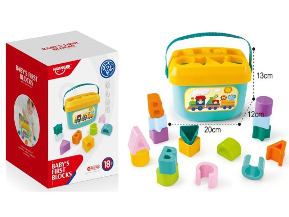 Sorter to doskonałe połączenie świetnej zabawy z nauką. Zestaw rozwija zdolności manualne dziecka poprzez dopasowania do otworów w wiaderku odpowiednich kształtów klocków. Same klocki można wykorzystać również do nauki alfabetu oraz kolorów i kształtów.