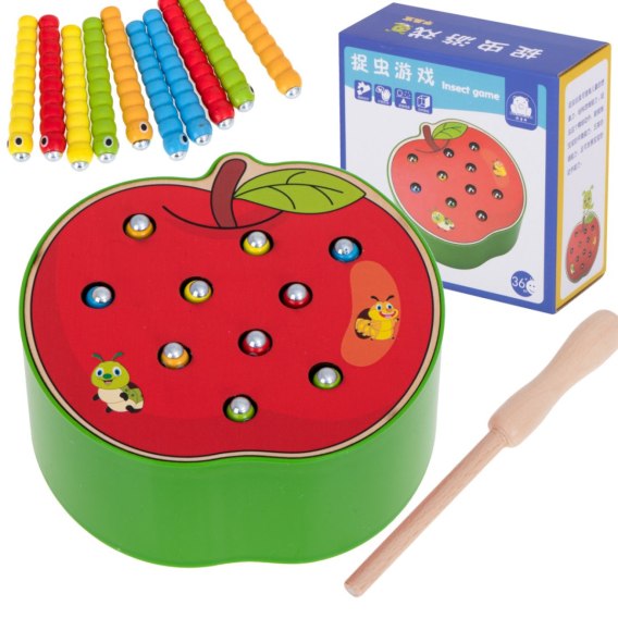 Zadaniem dziecka jest „złapanie" gąsienic na magnes i wyjęcie ich