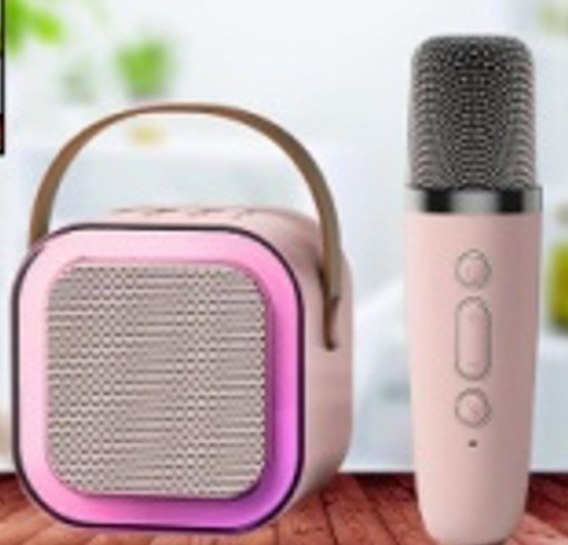 DO KARAOKE MIKROFON + GŁOŚNIK PRZENOŚNY BLUETOOTH USB LED RÓŻOWY