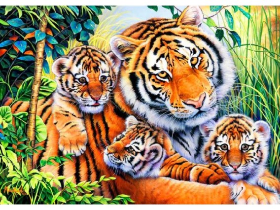 Haft Diamentowy, Obraz, Mozaika Diamentowa Diamond Painting, TYGRYSICA Z MŁODYMI 40x30cm