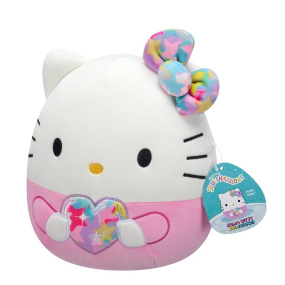 Miękka i urocza Hello Kitty Star 20 cm z serii Squishmallows – różowa maskotka z kokardką i sercem, idealna do przytulania i na prezent.