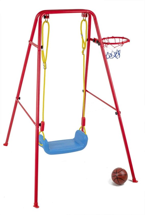 Do huśtawki można przymocować dołączony do zestawu kosz do