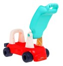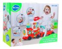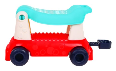 Multifunkcyjny, interaktywny zestaw 4 w 1 to propozycja dla dzieci między 12 a 36 miesiącem życia. Ten zestaw łączy w sobie cztery różne opcje zabaw, można go używać jako chodzika, jeździka, wózka do ciągnięcia oraz bawić się nim na siedząco. Zestaw posiada funkcje dźwiękowe i świetlne. Zabawka zasilana jest bateriami typu 3 x AAA 1.5 V (brak w zestawie).