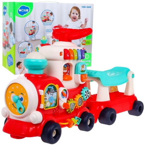 Interaktywna Lokomotywa 4w1 dla dzieci 12m+ Pchacz + Chodzik + Wózek + Zabawka edukacyjna