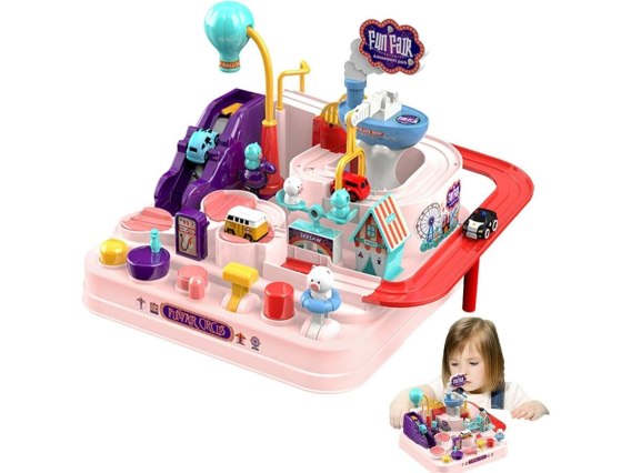 Tor przeszkód to zabawka pełna atrakcji - zaprojektowana w ten sposób aby przeprowadzić samochodzik aż do mety ale używając specjalnych przycisków! Samochodziki w trakcie "przeprawy" muszą nie raz zmienić kierunek jazdy, czy też pokonać m.in. zjeżdżalnię lub most zwodzony.