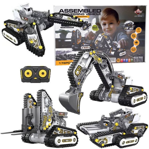 Klocki 176 El. Zestaw do składania MASZYNY BUDOWALNE 4w1 RC Koparka Czołg Wózek Widłowy Zdalnie Sterowane