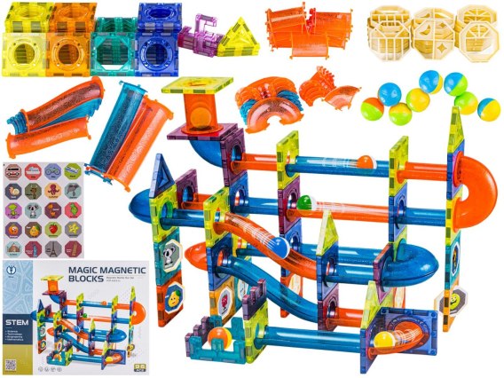 Klocki Magnetyczne, Tor Kulkowy Dla Kulek 96 Elementów Kulodrom
