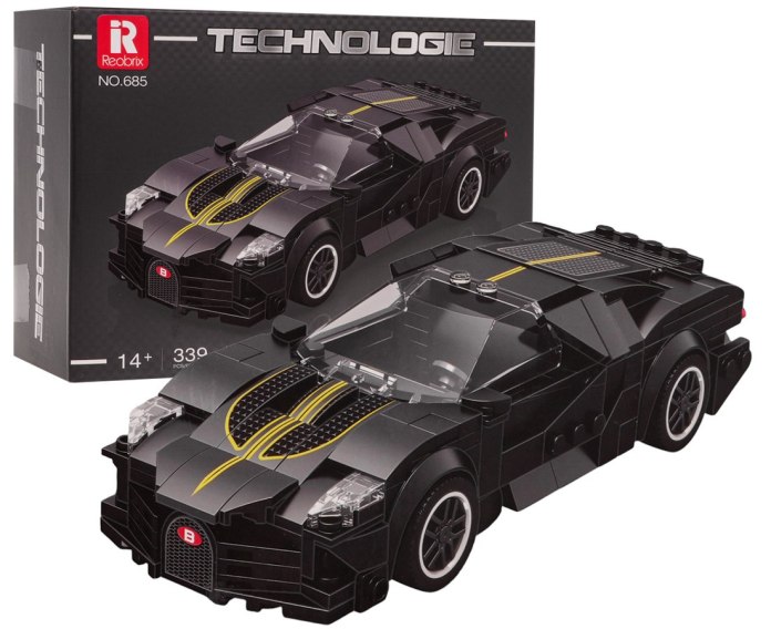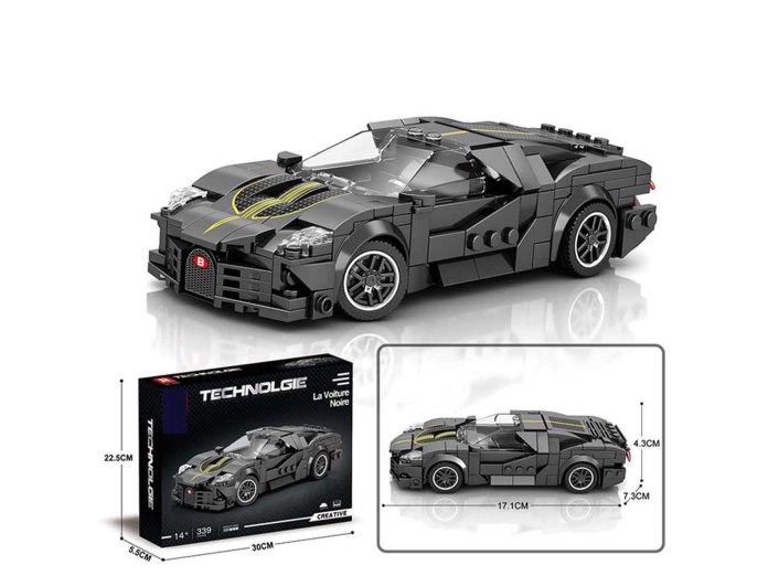 Zestaw 339 klocków konstrukcyjnych do samodzielnej budowy sportowego samochodu. Zabawka przeznaczona dla dzieci od 14-go roku życia, a poziom jej trudności to 2/5. W zestawie dołączono instrukcję obrazkową. Układanie klocków konstrukcyjnych rozwija u dzieci zdolności manualne, wyobraźnię przestrzenną i cierpliwość.