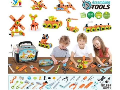 Klocki konstrukcyjne W Kuferku, Kreatywna Układanka 82 El, Narzędzia