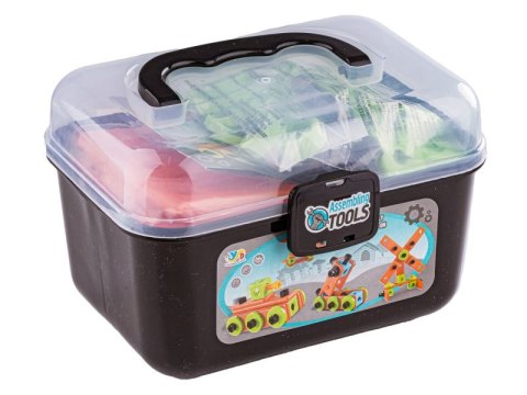 Zestaw elementów konstrukcyjnych w zestawie z kuferkiem i wieloma narzędziami przypadnie do gustu każdemu małemu majsterkowiczowi.