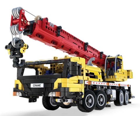 Wysokiej jakości klocki konstrukcyjne dla dzieci od ósmego roku życia. Zestaw składa się z 1931 elementów z których zbudować można dźwig z ruchomymi elementami (podnoszone i wysuwane ramię dźwigu, opuszczany hak, obrotowa wieżyczka o 360 stopni, wysuwane stopy stabilizujące, otwierane drzwi kabiny). Pojazd posiada duże gumowe opony.