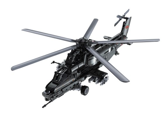 Wysokiej jakości klocki konstrukcyjne dla dzieci od ósmego roku życia. Zestaw składa się z 989 elementów z których zbudować można helikopter WZ-10. Koła helikoptera są połączone z jego łopatami. Łopata helikoptera obraca się automatycznie podczas jazdy, natomiast gdy śmigłowiec stoi w miejscu można ją obracać ręcznie. Wyrzutnię pocisków uruchamiamy obracając tylne koło w prawo lub lewo. Wyrzutnie rakiet są po obuch stronach helikoptera. Napęd na przednie koła w połączeniu z tylnym kołem do kierowania. Helikopter wyposażono w gumowe opony, poradzi sobie w każdym terenie. Zabawka zasilana akumulatorem typu JV1010/7.4 V (w zestawie), pilot bateriami typu 2 x AA 1,5V (brak w zestawie). Specyfikacja: -częstotliwość 2,4 GHz - materiał tworzywo sztuczne, - solidne, realistyczne wykonanie, - przeznaczony dla dzieci od 8-go roku życia, - duże gumowe opony, - automatyczny obrót łopat, - manualny obrót łopat, - wyrzutnie pocisków, - napęd na przednie koła w połączeniu z tylnym kołem.