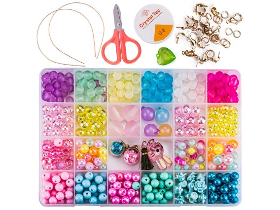 Jest to zabawka do samodzielnego zaprojektowania i zbudowania. Zestaw składa się z wielu kolorowych, plastikowych koralików i pozwala na dowolne budowanie wszystkiego co wymyśli dziecko - bransoletek, naszyjników, zawieszek, przepasek itp. Zabawka, która przemieni dziecko w małego architekta, pobudzi wyobraźnię i pomoże rozwinąć zdolności manualne. Super zestaw zapewni każdemu dziecku mnóstwo wesołej zabawy.