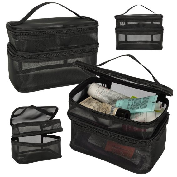 Kosmetyczka podróżna organizer składany piętrowy do przechowywania kosmetyków akcesoriów czarny