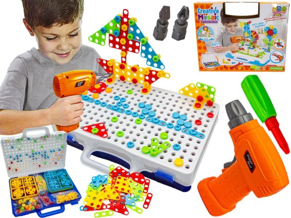 Kreatywna Mozaika, Układanka, Klocki, Wkrętarka Śrubki W Walizce 237 El