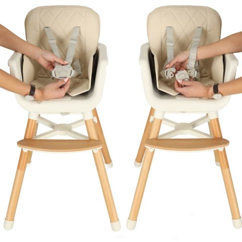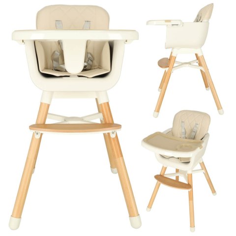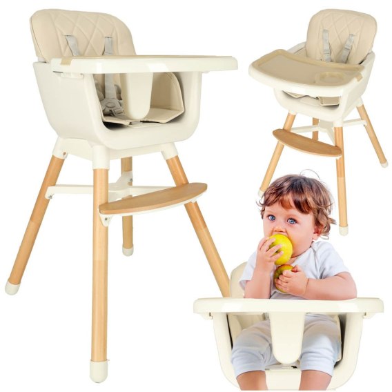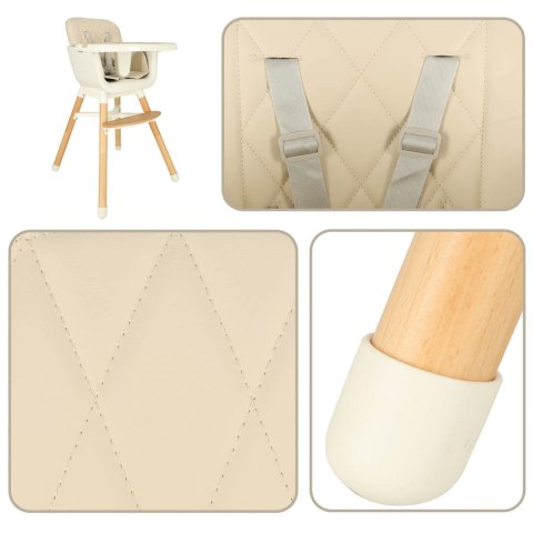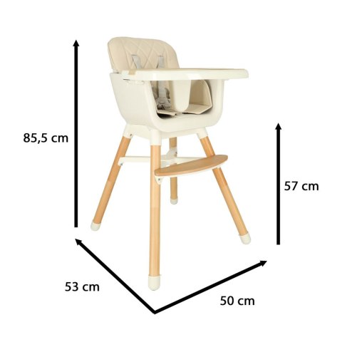 Krzesełko do karmienia z podnóżkiem drewniane nogi kolor beżowy
