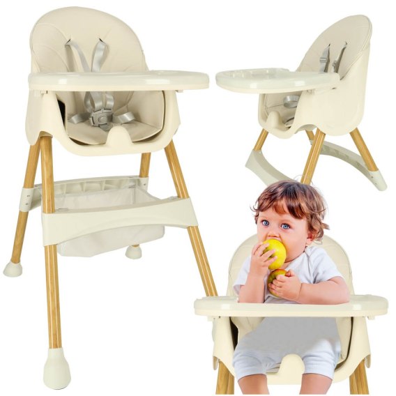 Krzesełko do karmienia z pojemnikiem tacką kolor kremowy