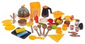 - atrapy produktów spożywczych: groszek zielony, 2 x liść sałaty, 2 x plasterek marchwi, 2 x plasterek papryki, krewetka, jajko sadzone, parówki, cytryna z możliwością przekrojenia, 3 x jajka, ostra papryczka na rzepy, 2 x rybka,