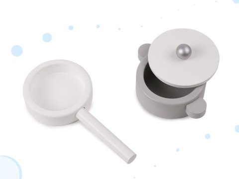 Zawartość zestawu: Garnek Patelnia 2x talerze Nóż Łyżka Łopatka Przyprawniki