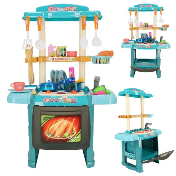 Kuchnia plastikowa dla dzieci z oświetleniem i kranem niebieska