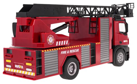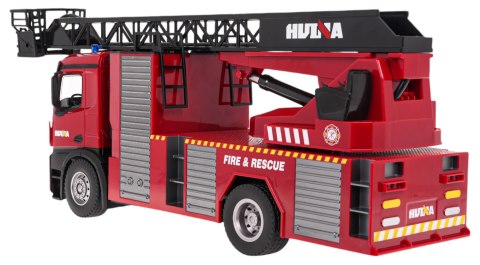 Duży, zdalnie sterowany wóz straży pożarnej, wykonany w skali 1:14. Zabawka przeznaczona dla dzieci od 8-go roku życia. Wóz strażacki został realistycznie wykonany z wysokiej jakości plastiku i gumowych kół. Za pomocą pilota można jeździć wozem we wszystkich kierunkach (przód-tył-prawo-lewo). Na kontrolerze znajdują się też przyciski aktywujące takie funkcje, jak obrót platformy z wysięgnikiem, podnoszenie i opuszczanie wysięgnika oraz działający wąż z lejącą się wodą. Aby wąż strażacki zadziałał, trzeba przytwierdzić go do platformy na końcu wysięgnika, oraz nalać wodę do zbiorniczka na górze wozu. Dodatkowo, pojazd posiada funkcje dźwiękowe i świetlne, które można wyłączyć pilotem.