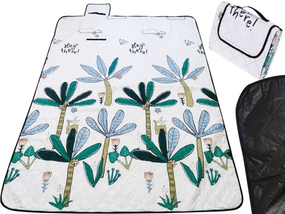 Spód maty tworzy wodoodporny materiał, dzięki temu możesz położyć koc na mokrej trawie bez obaw, że zaraz przemoknie a Ty wraz z nim.