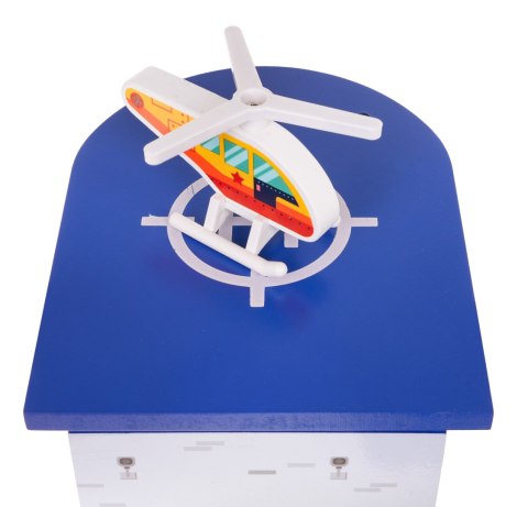 - drewniany posterunek policji z lądowiskiem dla helikopterów ok. 19 cm x 15 cm x 9 cm,