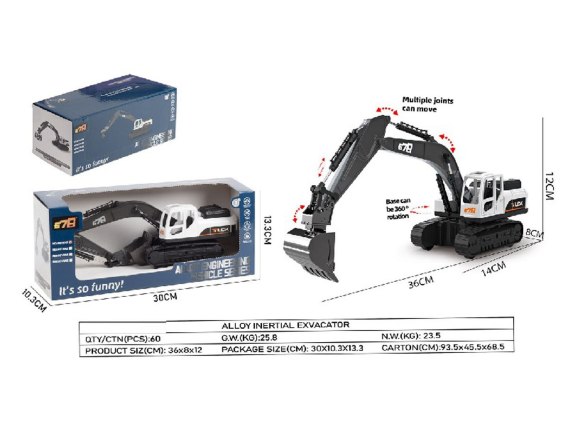 Koparka gąsienicowa z metalowymi elementami dla dzieci od trzeciego roku życia. Zabawka wykonana została z najlepszej jakości materiałów z dbałością o szczegóły. Kabina maszyny może wykonywać obrót o 360 stopni, a ramię koparki i łyżka są ruchome. Zabawka będzie idealna zarówno w domu jak i na zewnątrz.