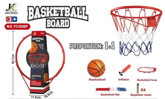 Metalowy Kosz do Gry w Koszykówkę dla dzieci 3+ Skala 1:1 + Obręcz + Siatka + Piłka + Pompka