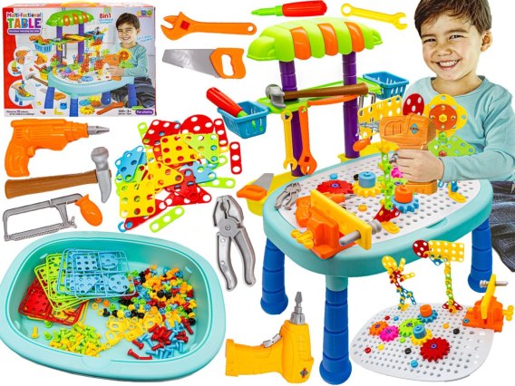 Multifunkcyjny Stolik + Narzędzia, Wkrętarka + Kreatywna Mozaika 355el. Zestaw Konstrukcyjny