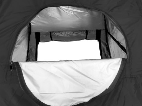 Przed użyciem zapoznaj się z instrukcją obsługi. Produkt nie jest zabawką - nie udostępniaj dzieciom bez nadzoru osoby dorosłej. Opakowanie nie jest zabawką - cienka folia - ryzyko uduszenia. Przed użyciem sprawdź, czy namiot jest prawidłowo rozłożony, stabilny i odpowiednio zamocowany. Produkt łatwopalny. Trzymaj z dala od ognia i źródeł ciepła.