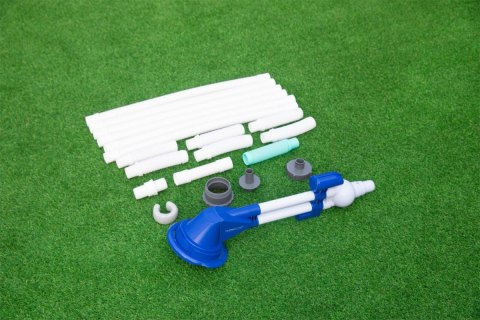 * Opatentowana konstrukcja specjalnie dla basenów naziemnych z systemami filtracji o niskim przepływie. (Co najmniej 86W i o przepływie systemu co najmniej 3,785 L/h (1,000gal./h))* Regulator ciśnienia dostosowuje przepływ wody dla użycia z pompami o dużej mocy.* Łatwy w obsłudze. Włącz pompę, a odkurzacz włączy się automatycznie.* Zintegrowany filtr wstępny zbiera zanieczyszczenia, takie jak brud, liście i piasek, zapobiegając tym samym zatkania się filtra pompy.* System szerokiej klamry, zastosowany na dolnym talerzu odkurzacza, zapewnia łatwy dostęp do przegrody na zanieczyszczenia.* Pływak i waga odkurzacza zapewniają jego optymalną zwrotność.* Zalecany do basenów o miękkich ścianach, o rozmiarach od 4,57 m/15 stóp do 4,87m/16 stóp.* Zawiera przewody o łącznej