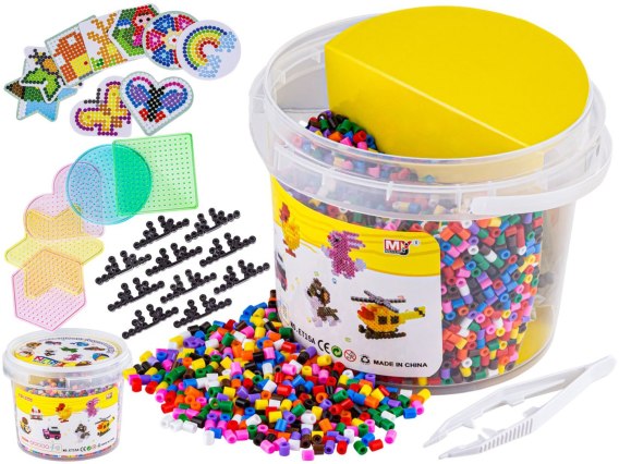 Prasowanka, Koraliki Do Prasowania, Zestaw 5000 Elementów Wiaderko + SZABLONY, 5 Podstawek