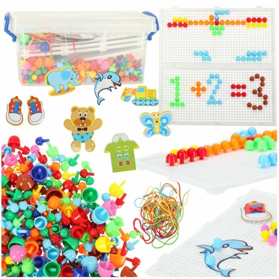 pudełku. Zabawka polega na wpinaniu grzybków, w perforowaną podstawkę