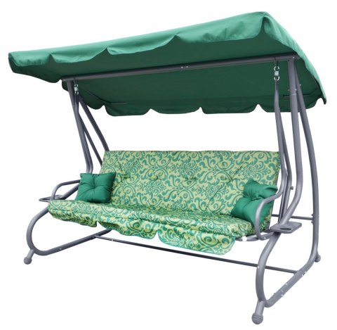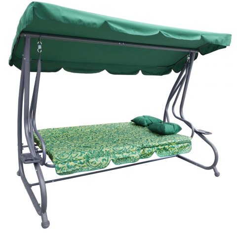Huśtawka ogrodowa z rozkładanym siedziskiem i regulacją daszka, zielona ze wzorem [8011 PATTERN Z]