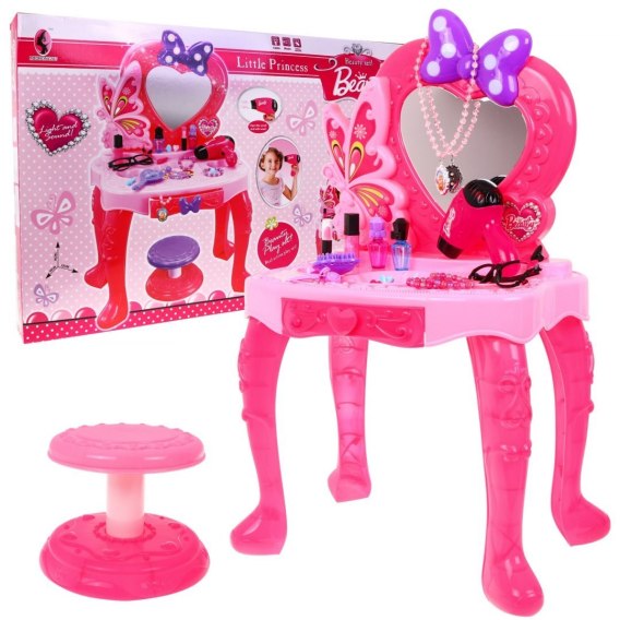 Niesamowita, śliczna różowa toaletka dla każdej małej strojnisi.