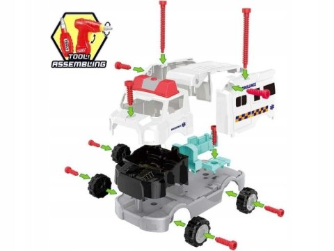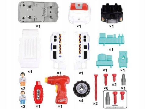 Rozkręcane pogotowie to idealna zabawka dla małych majsterkowiczów. Zestaw ten rozwija kreatywność, logiczne myślenie i zdolności manualne. W skład zestawu wchodzi mnóstwo części, m.in. koła, karoseria, śruby.