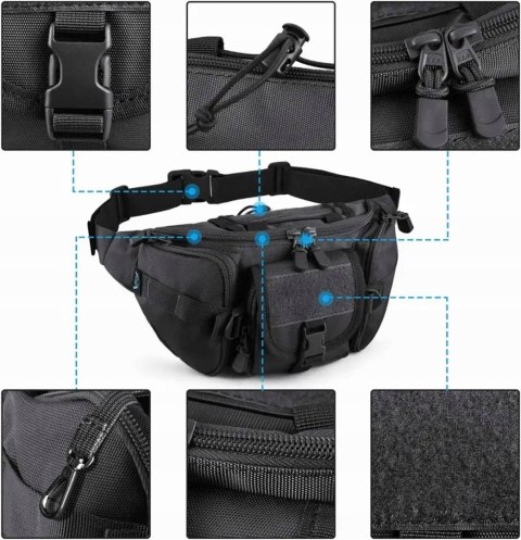 Taktyczna torba typu nerka, którą można nosić tradycyjnie w pasie (biodrówka).
