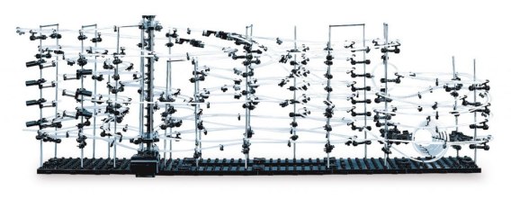 Połączenie wszystkich elementów finalnie daje wielki tor, po którym wędrują metalowe kulki.